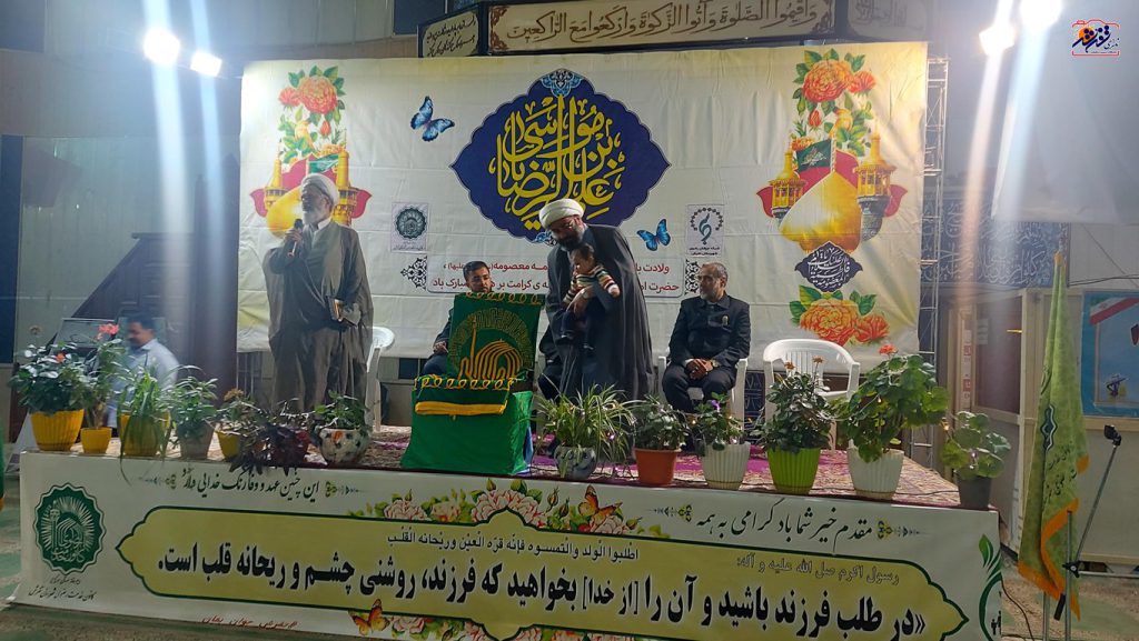 در این جشن برنامه‌هایی همچون سرود دسته جمعی، دکلمه‌خوانی، نقالی، مولودی‌خوانی و روایتگری توسط خدام امام رضا(ع)، سخنرانی حجت الاسلام اجرایی امام جمعه شهرستان و قرعه کشی برگزار شد.