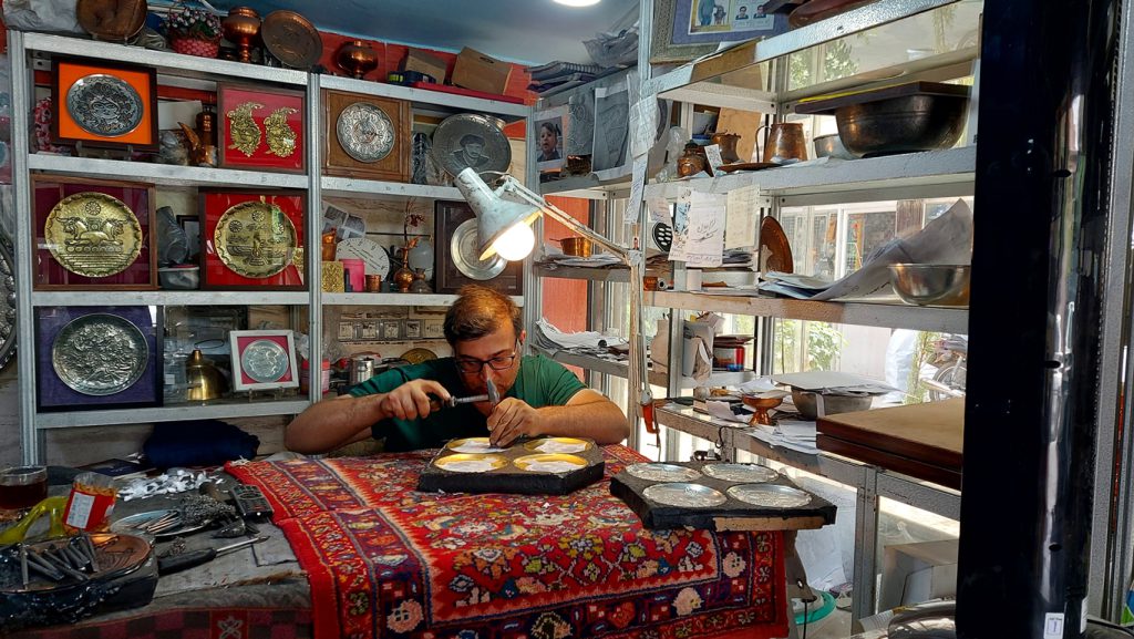 این استاد قلمزنی عدم وجود مکانی دائم را مشکلی دیگر دانست و گفت: زمانی که شهری به عنوان مقصد گردشگری معرفی میشود باید به تمام کشور معرفی شود و اثرات آن در جذب توریست دیده شود که در شهر توریست بالایی دیده نمیشود؛ پس در نتیجه آنچه تولید میشود بیشتر به صورت نمایشگاهی فروش میرود که به دلیل سهمیه در نمایشگاهها برخی کارها در مغازه باقی میماند و دیده نمیشود.