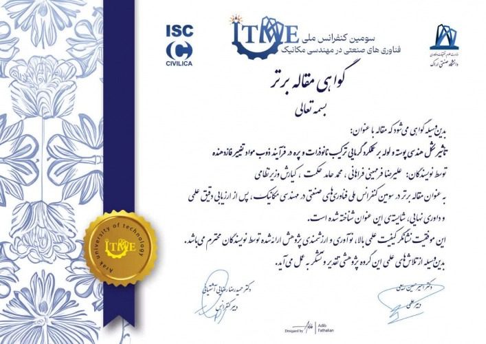 مقاله عضو هیأت علمی دانشگاه تفرش به عنوان مقاله برتر در سومین کنفرانس ملی فناوری‌های صنعتی در مهندسی مکانیک برگزیده شد.