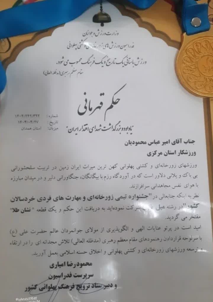 به گزارش پایگاه خبری تحلیلی «ندای تفرش»؛ امیر عباس محمودیان در مسابقات زورخانه‌ای خردسالان کشور به میزبانی استان همدان توانست از دیگر رقبای خود در رشته میل‌بازی پیشی گرفته و مقام اول را کسب نمایید.