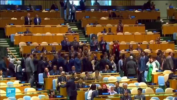 به گزارش پایگاه خبری تحلیلی «ندای تفرش»؛ به نقل از گروه بین‌الملل خبرگزاری فارس؛ پایگاه خبری «عربی۲۱» شامگاه جمعه گزارش داد عصر روز گذشته هنگام ورود نتانیاهو برای ایراد سخنرانی در هشتادمین نشست مجمع عمومی سازمان ملل، شمار زیادی از هیأت‌های کشورهای عضو سالن اصلی را ترک کردند.رسانه‌های عبری این اقدام را «سونامی خروج» توصیف کردند. با این حال تنها ۴۸ کشور در سالن باقی ماندند که نام برخی از آن‌ها در تصاویر رسمی سازمان ملل مشخص شد.در این میان، سه کشور عربی امارات، بحرین و موریتانی برخلاف بسیاری دیگر از دولت‌ها سالن را ترک نکردند. تصاویر منتشرشده از سوی سازمان ملل نشان می‌دهد که بخش بزرگی از صندلی‌ها در برابر جایگاه سخنرانی خالی مانده بود، در حالی که نمایندگان این سه کشور همچنان بر صندلی‌های خود نشسته بودند.