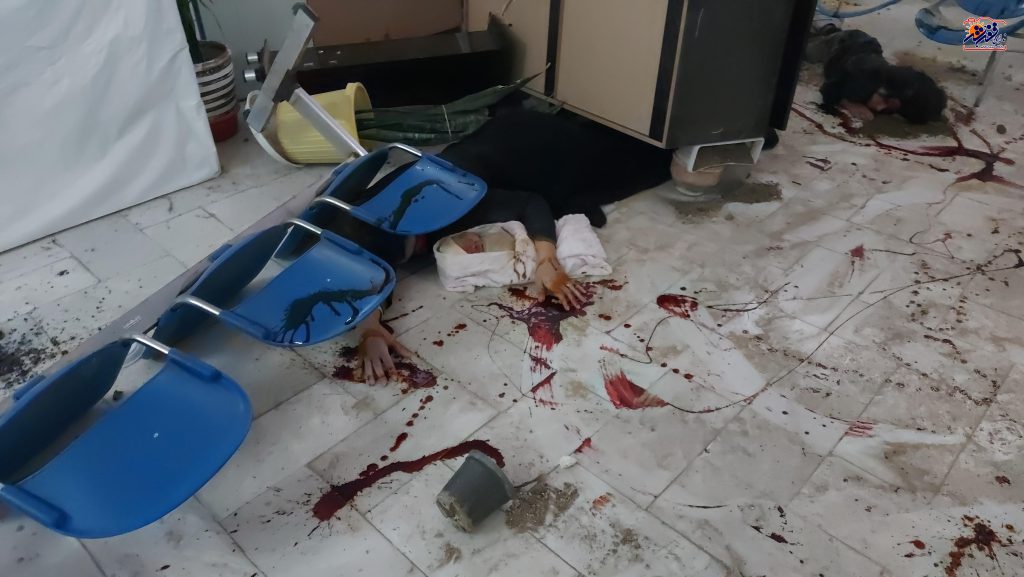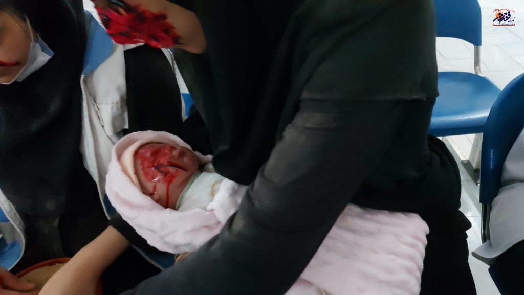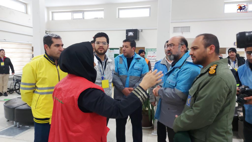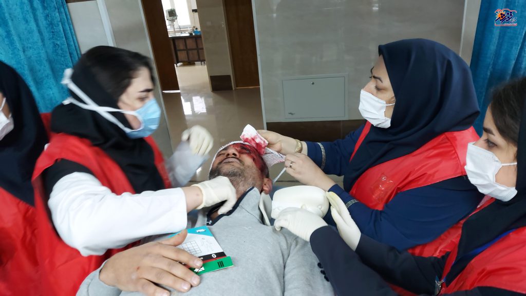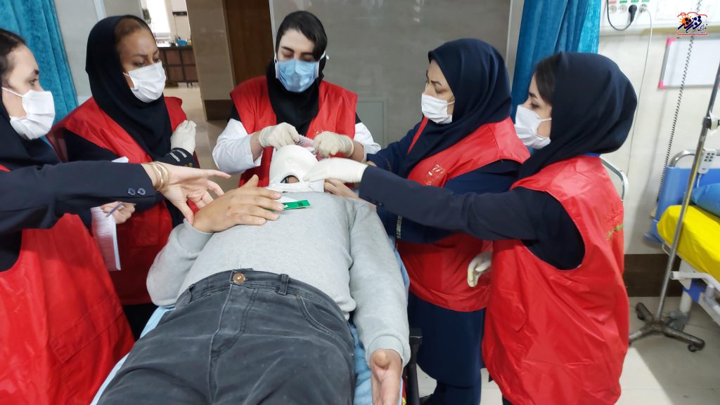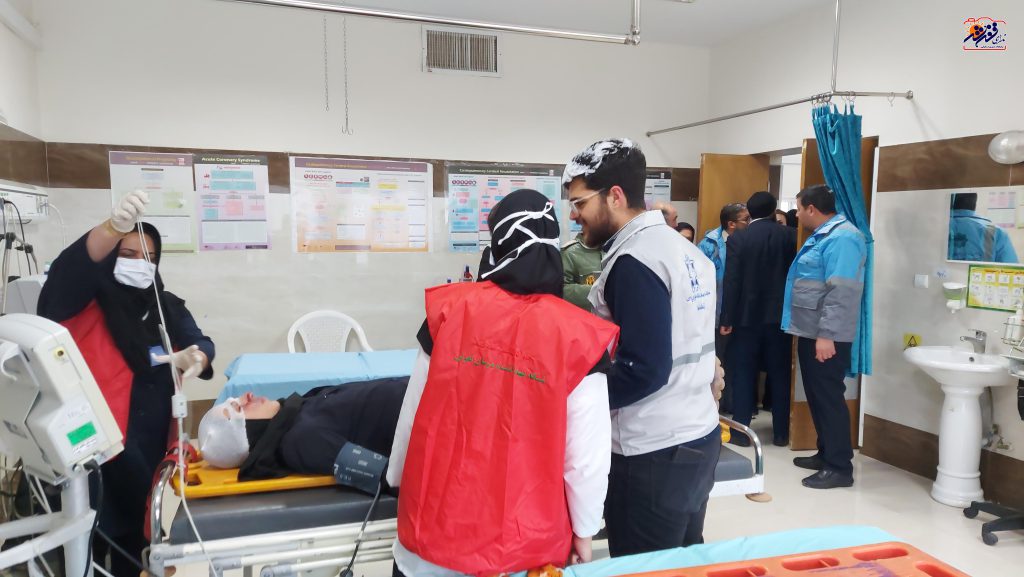 این مانور در دو بخش انجام شد که بخش اول اصابت موشک به درمانگاه هفت تیر که موجب شهادت و مجروح شدن بخشی از مردم و کادر درمان درمانگاه شده بود انجام شد که بلافاصله نیروهای امدادی به این درمانگاه اعزام و مراحل کمکرسانی انجام شد و ادامه فعالیت این درمانگاه و کمکرسانی به مجروحان در سالن ورزشی هفت تیر بدون وقفه ادامه پیدا کرد.