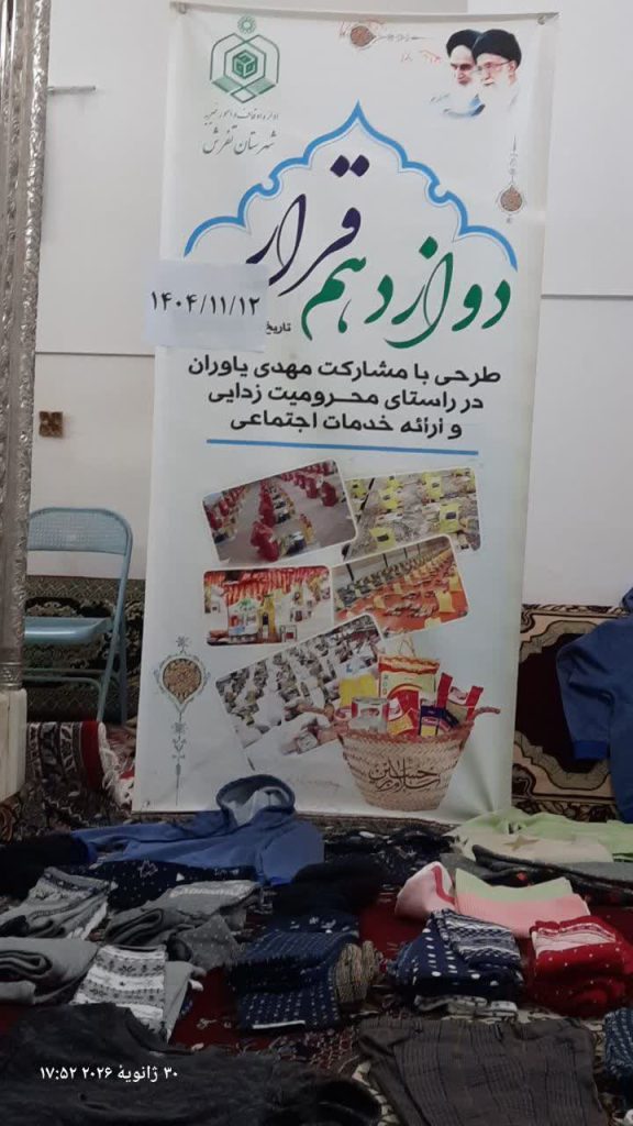به گزارش پایگاه خبری تحلیلی «ندای تفرش»؛ حجت‌الاسلام حمید کرمی گفت: همزمان با ۱۲ بهمن‌ماه، سالروز پیروزی شکوهمند انقلاب اسلامی ایران، طرح «قرار دوازدهم» با هدف حمایت از اقشار کم‌برخوردار و در راستای ترویج فرهنگ مواسات و همدلی، در امامزاده سید مهدی ابویعلی(ع) اجرا شد.